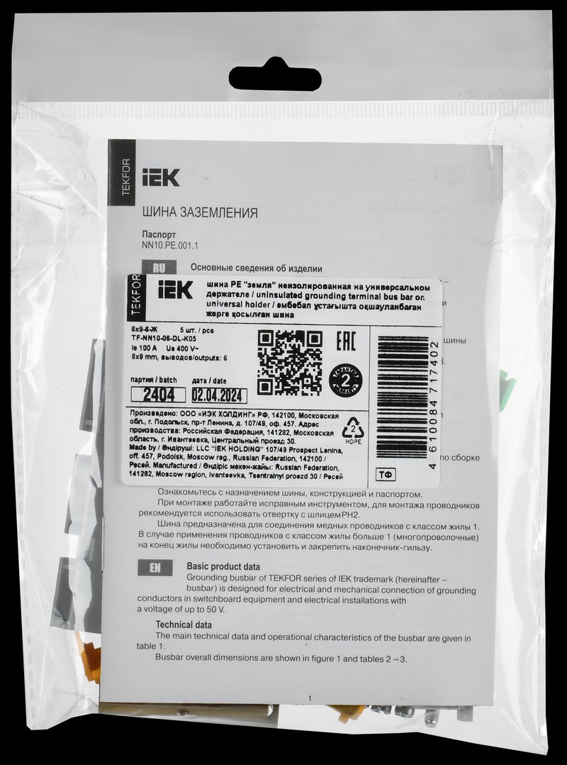 Tekfor TF-NN10-06-DL-K05 Шина PE "земля" неизолированная на универсальном держателе 6х9-6-Ж