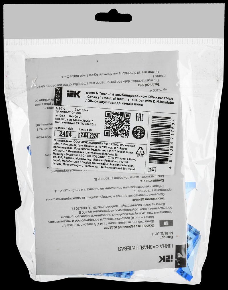 TEKFOR Шина N "ноль" в комбинированном DIN-изоляторе "Стойка" 6х9-7-С IEK