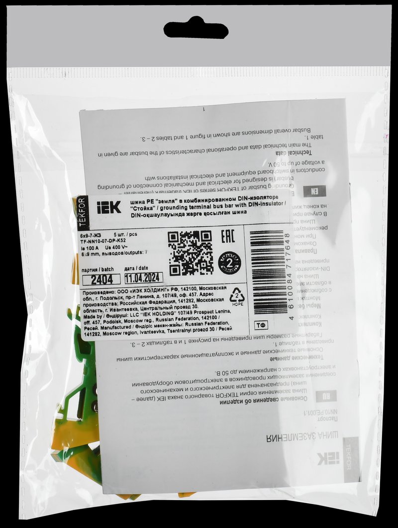 TEKFOR Шина PE "земля" в комбинированном DIN-изоляторе "Стойка" 6х9-7-ЖЗ IEK