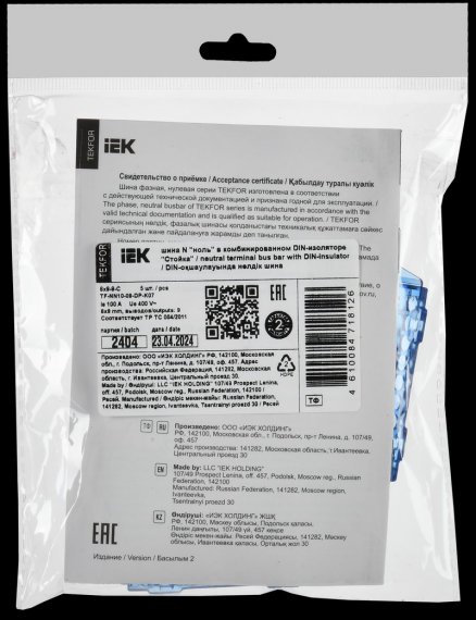TEKFOR Шина N "ноль" в комбинированном DIN-изоляторе "Стойка" 6х9-9-С IEK