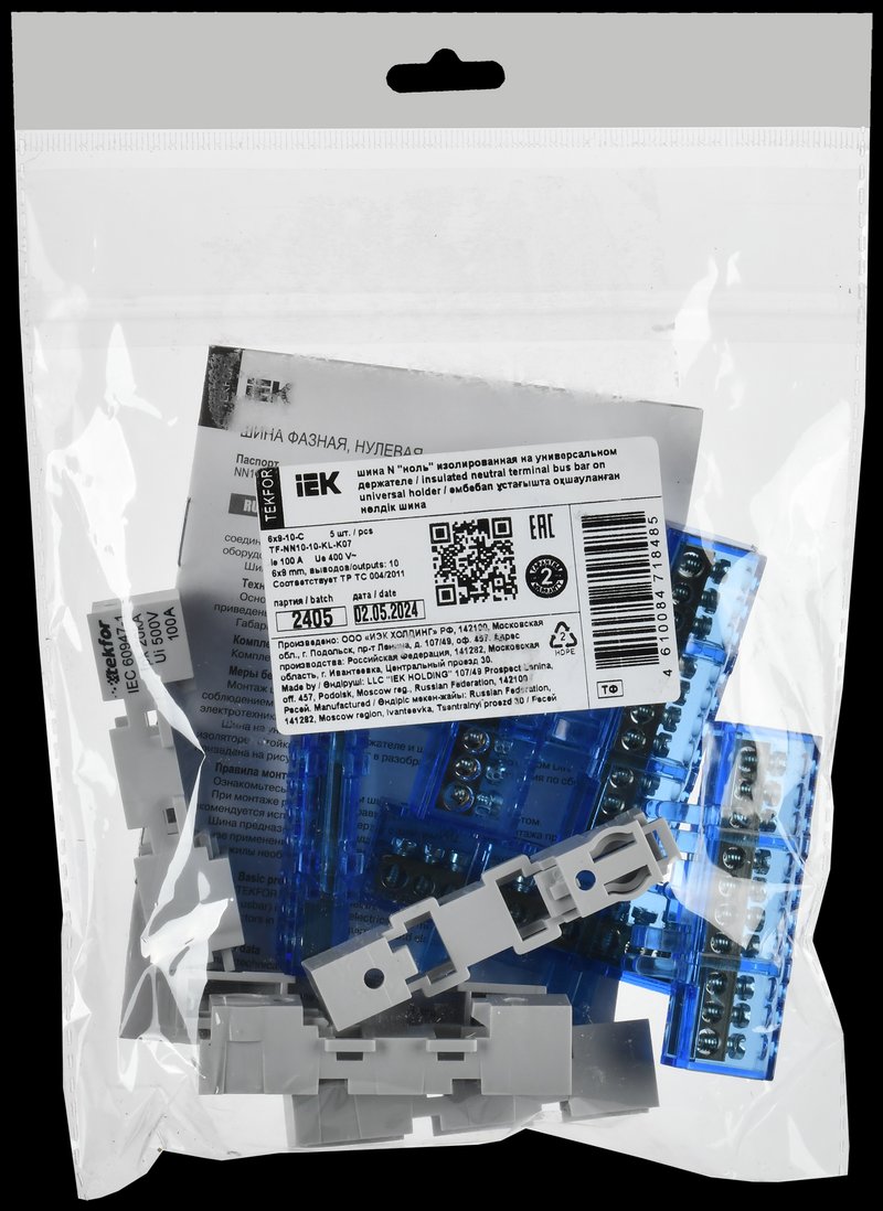 TEKFOR Шина N "ноль" изолированная на универсальном держателе 6х9-10-С IEK