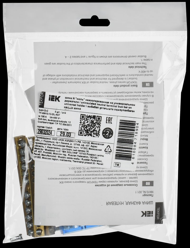 Tekfor TF-NN10-12-DL-K07 Шина N "ноль" неизолированная на универсальном держателе 6х9-12-С