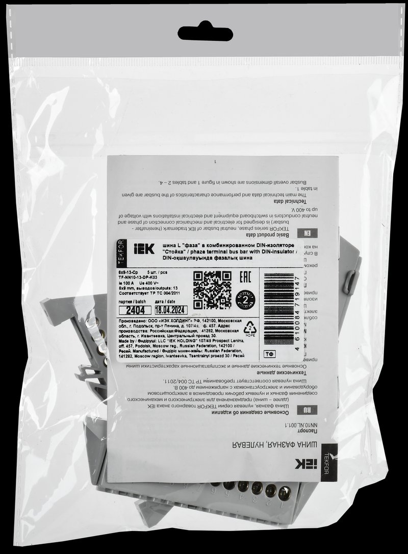 TEKFOR Шина L "фаза" в комбинированном DIN-изоляторе "Стойка" 6х9-13-Ср IEK