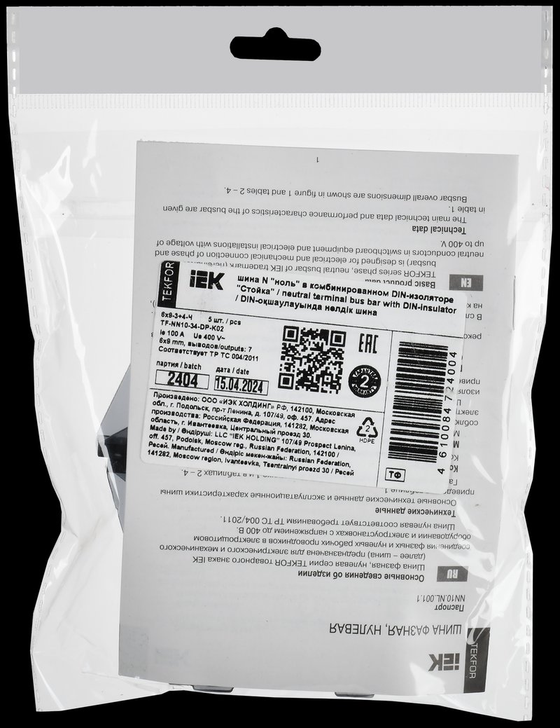 TEKFOR Шина N "ноль" в комбинированном DIN-изоляторе "Стойка" 6х9-(3+4)-Ч IEK