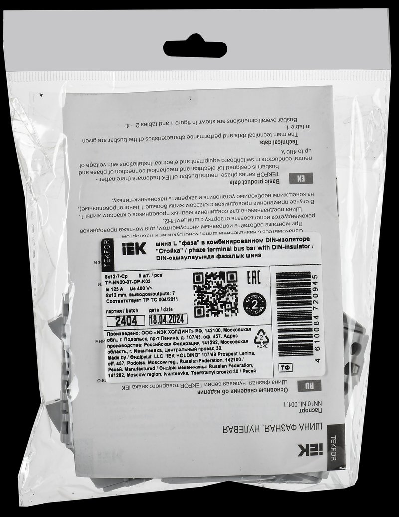 TEKFOR Шина L "фаза" в комбинированном DIN-изоляторе "Стойка" 8х12-7-Ср IEK