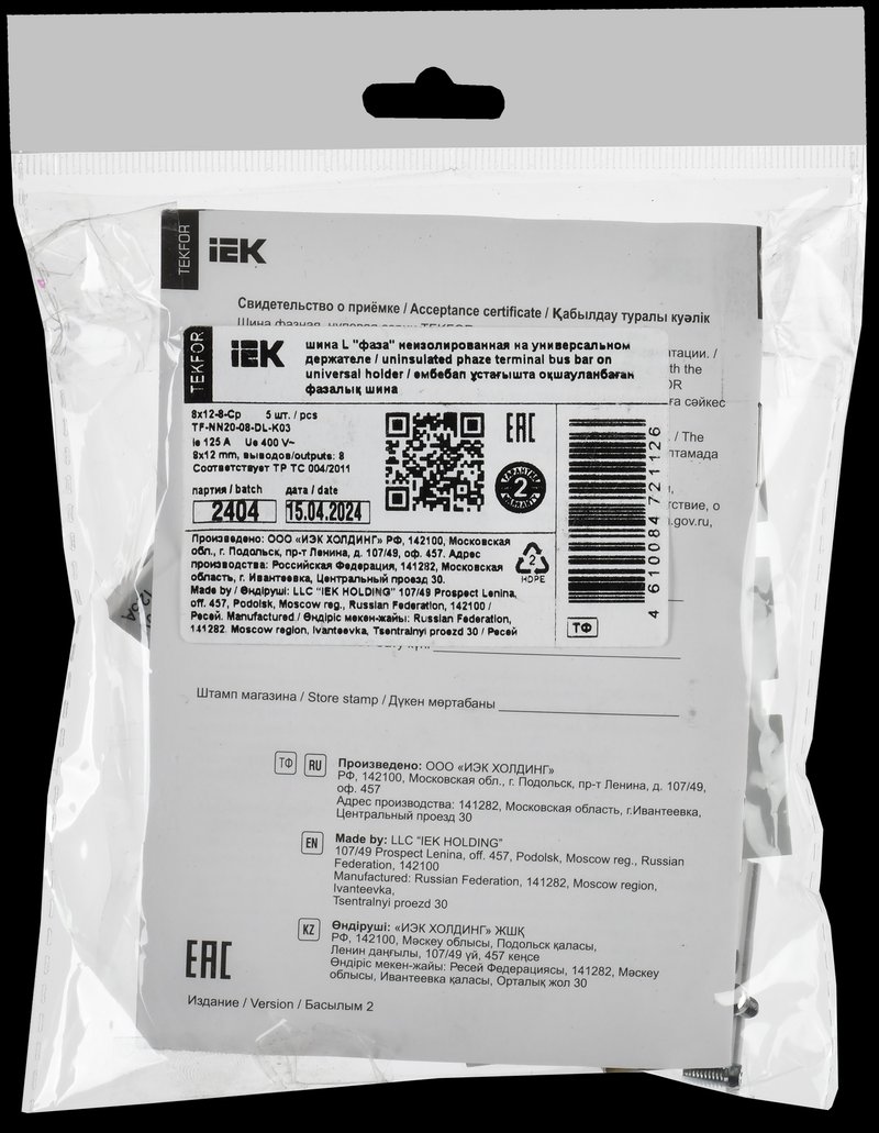 TEKFOR Шина L "фаза" неизолированная на универсальном держателе 8х12-8-Ср IEK