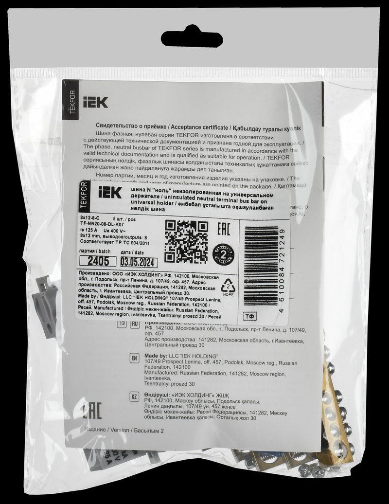TEKFOR Шина N "ноль" неизолированная на универсальном держателе 8х12-8-С IEK