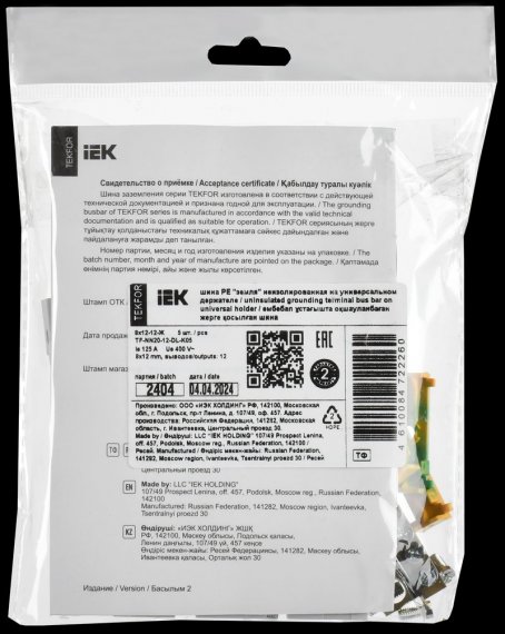 TEKFOR Шина PE "земля" неизолированная на универсальном держателе 8х12-12-Ж IEK