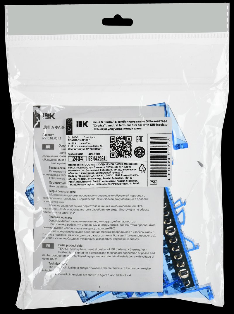 TEKFOR Шина N "ноль" в комбинированном DIN-изоляторе "Стойка" 8х12-13-С IEK