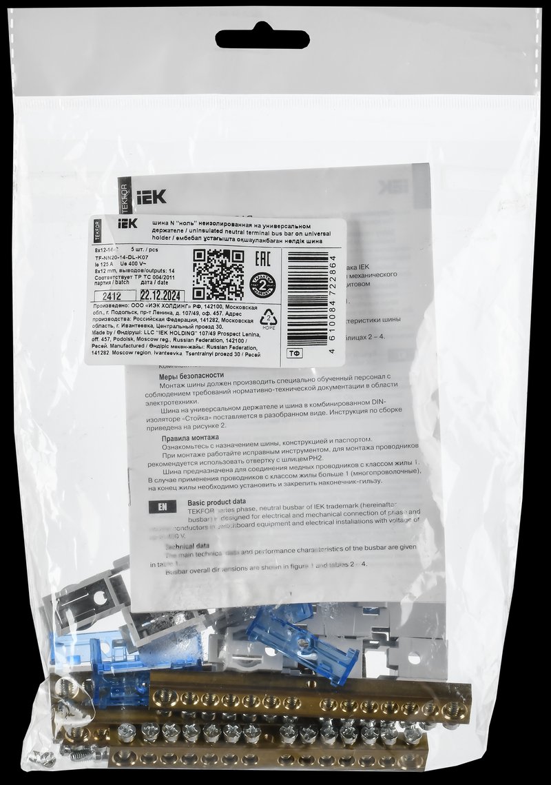 TEKFOR Шина N "ноль" неизолированная на универсальном держателе 8х12-14-С IEK