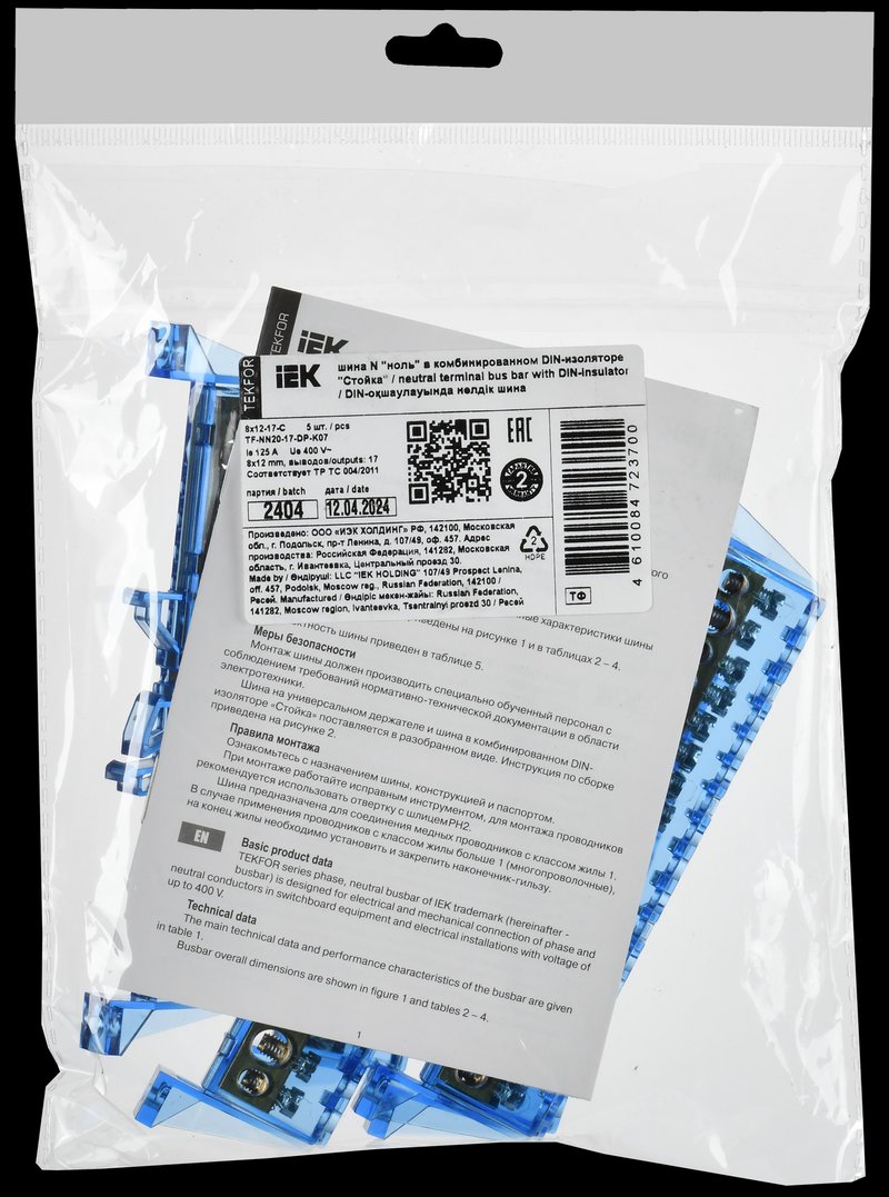 TEKFOR Шина N "ноль" в комбинированном DIN-изоляторе "Стойка" 8х12-17-С IEK