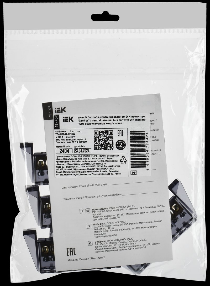 TEKFOR Шина N "ноль" в комбинированном DIN-изоляторе "Стойка" 8х12-(4+4)-Ч IEK