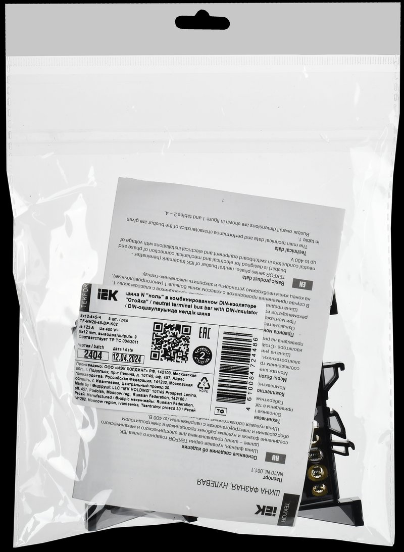 TEKFOR Шина N "ноль" в комбинированном DIN-изоляторе "Стойка" 8х12-(4+5)-Ч IEK