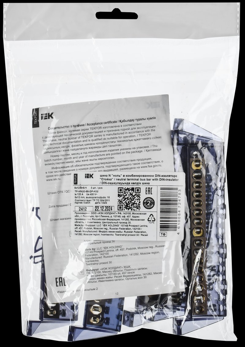 TEKFOR Шина N "ноль" в комбинированном DIN-изоляторе "Стойка" 8х12-(8+8)-Ч IEK