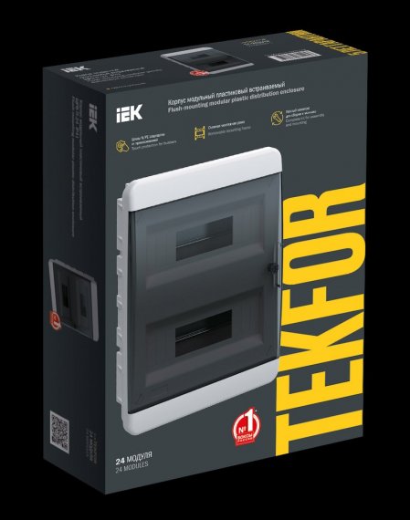TEKFOR Корпус пластиковый ЩРВ-П-24 IP41 черная прозрачная дверь IEK