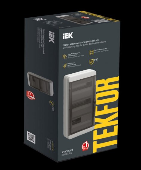TEKFOR Корпус пластиковый КМПн-36 IP65 черная прозрачная дверь IEK