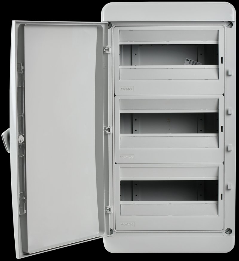 Корпуса серии TEKFOR IP65 предназначены для установки модульного оборудования. Используются для организации распределительных щитов в помещениях с большим содержанием пыли и влаги, например, в гаражах, производственных помещениях, подвалах, автомойках, на складах, а также на открытом воздухе. Изготовлены из прочного ABS-пластика, качественные материалы обеспечивают простой монтаж и безопасную эксплуатацию щита.