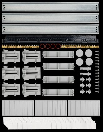 - Регулировка расстояния между DIN-рейками в трех положениях 125, 150, 175 мм предоставляет возможность установки нестандартного модульного оборудования.